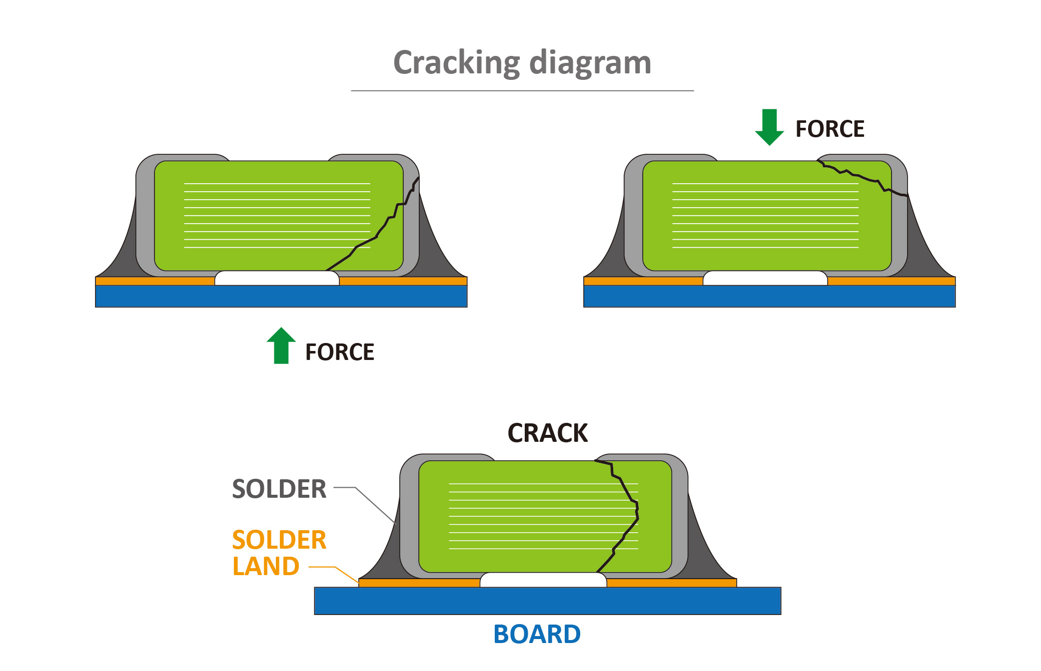 即使產品製程完美,若客戶端在應用時未遵守回流焊條件或裝配規範,也可能誘發裂紋。例如: